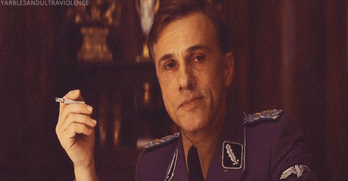 Why is it so great? Because you don’t know the extent of Landa’s knowledge. He hints at it subtly throughout the conversation. I say conversation, it is more Landa telling her what to do. That’s whats brilliant about the writing of Landa and this scene, he just takes control. Whether he is teasing her as he knows who she really is or just telling her how the film night is to be run, he is darkly delicious (as a crème strudel.) He drags a simple conversation of painful moments through ordering strudels to offering cigarettes to his pauses. And that sly clue with the glass of milk. Ah, did anyone else scream at the screen?